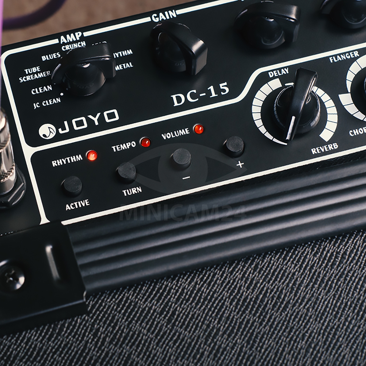 Особенностью Joyo DC-15 является наличие нескольких моделей преампов, включая такие классические устройства, как Roland Jazz Chorus, Ibanez TS9 и Boss MT-2, а также фирменные модели Wave-X. Это дает возможность имитировать звучание разных стилей и жанров — от чистого джаза до агрессивного металла. Усилитель оснащен набором регуляторов для гибкой настройки звука: Gain, Tone, Volume, Delay/Reverb и Effect, что позволяет точно подстраивать звучание под индивидуальные потребности.